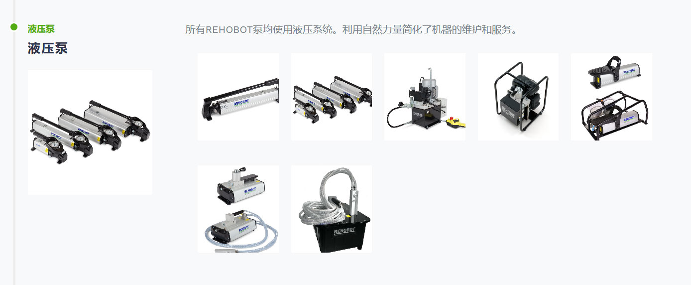 REHOBOT的聲譽(yù)建立在所生產(chǎn)產(chǎn)品的質(zhì)量上。REHOBOT的目標(biāo)是不*在產(chǎn)品的質(zhì)量和可靠性方面,而且在以客戶為*的全方面支持和服務(wù)結(jié)構(gòu)方面都超越您的期望。REHOBOT工業(yè)液壓產(chǎn)品已在全*許多不同的應(yīng)用和用戶中使用。加工,采礦,鋼鐵,建筑,鐵路和造船是REHOBOT服務(wù)的眾多行業(yè)中的一些。REHOBOT提供的產(chǎn)品和設(shè)備包括液壓手動泵,氣動液壓泵,電動液壓泵,鋼制和鋁制氣缸,推拉套件,液壓拉拔器,吊具,切削工具和專用工具套件。